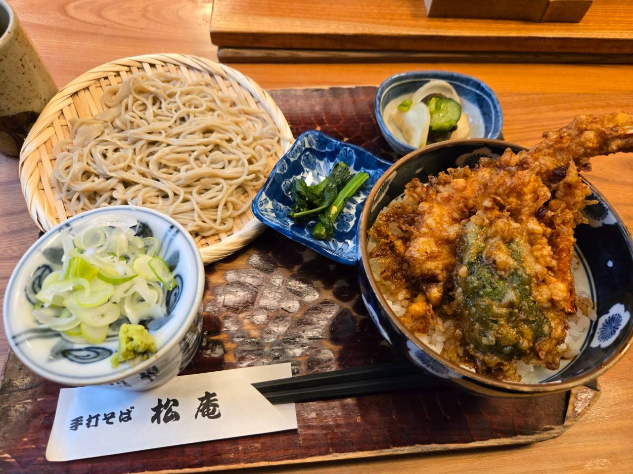 本日のランチは松庵さんで天丼セット(温&冷)。