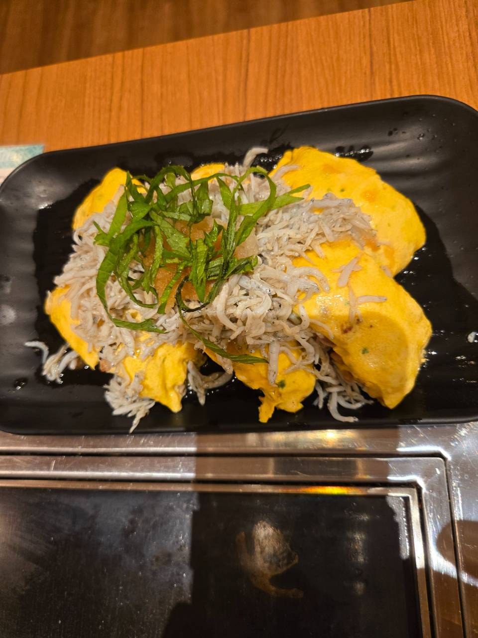 季節限定の桜エビとチーズのお好み焼きとこちらも季節限定のしらすのとん平焼き。