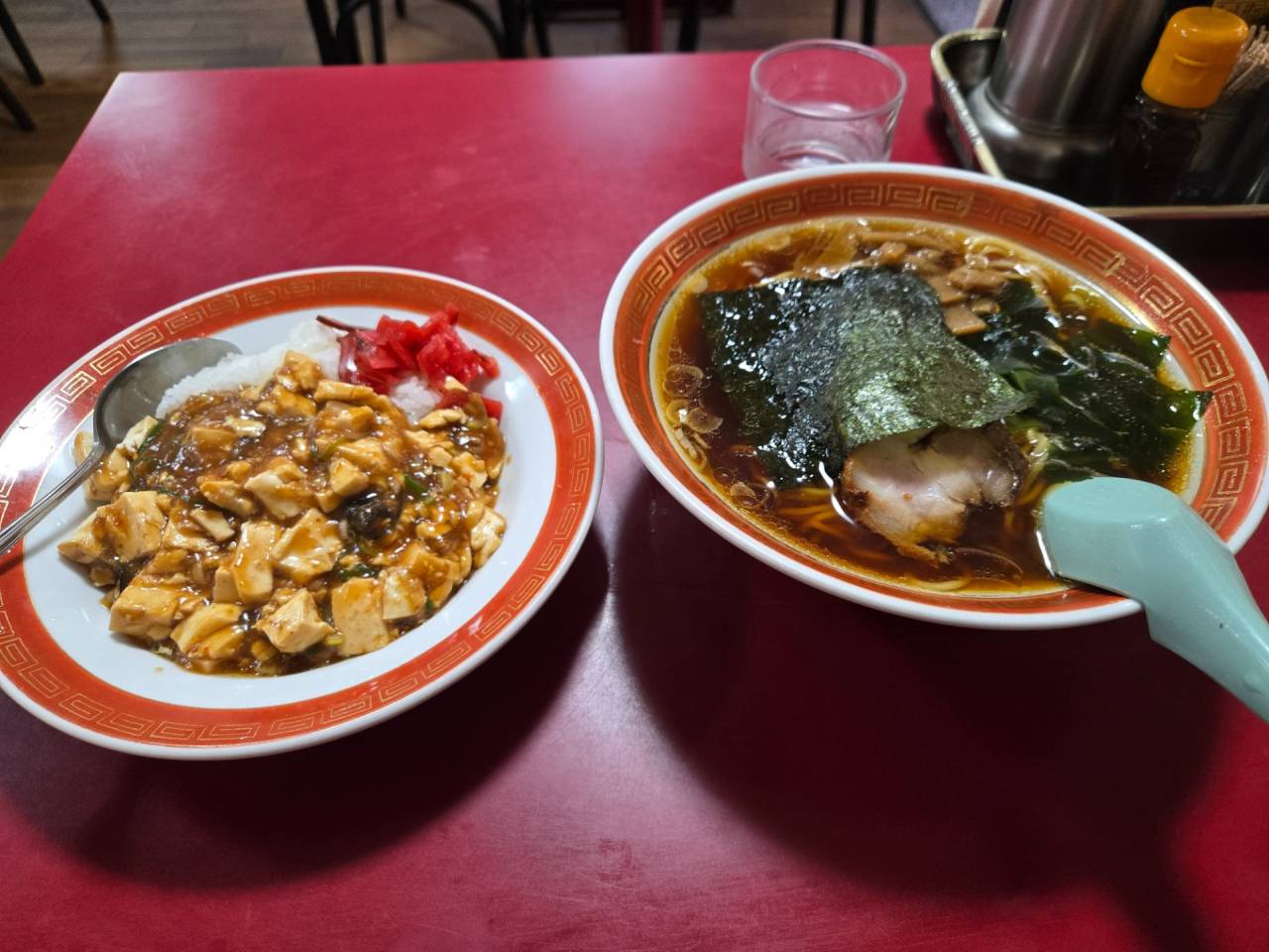 チャーハンと半マーボー丼・ラーメンセットそして餃子をいただきました。