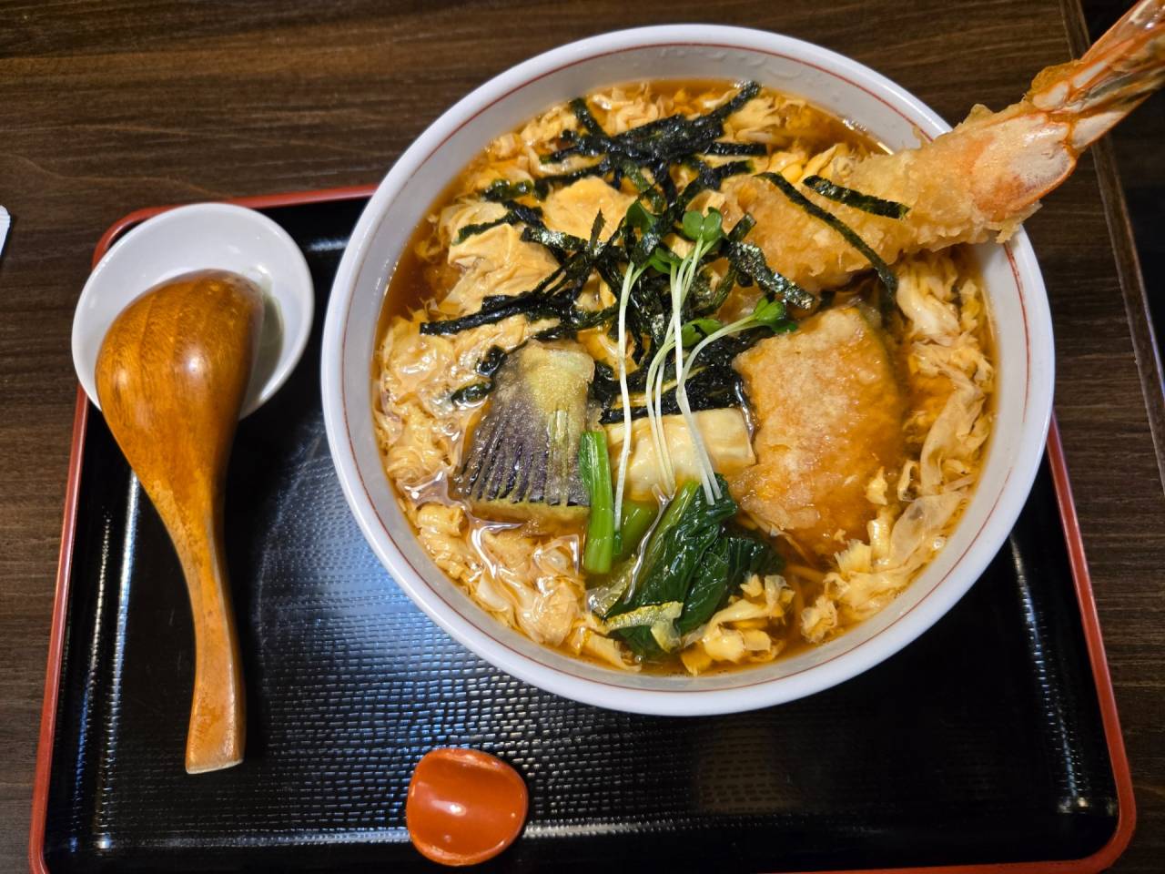 天ぷらは海老、かぼちゃ、ナスが入ってました。