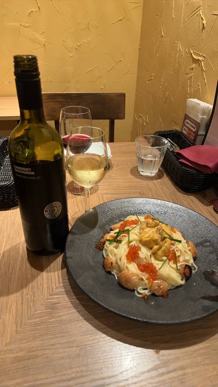 ただのウニ(1980円)でなく、ホタテ、いくらがついているプレミアム(2948円)の大盛(275円)そして更にはウニダブル(1320円)という贅沢でパスタ1品で4543円というなんとも贅沢な食事でした。