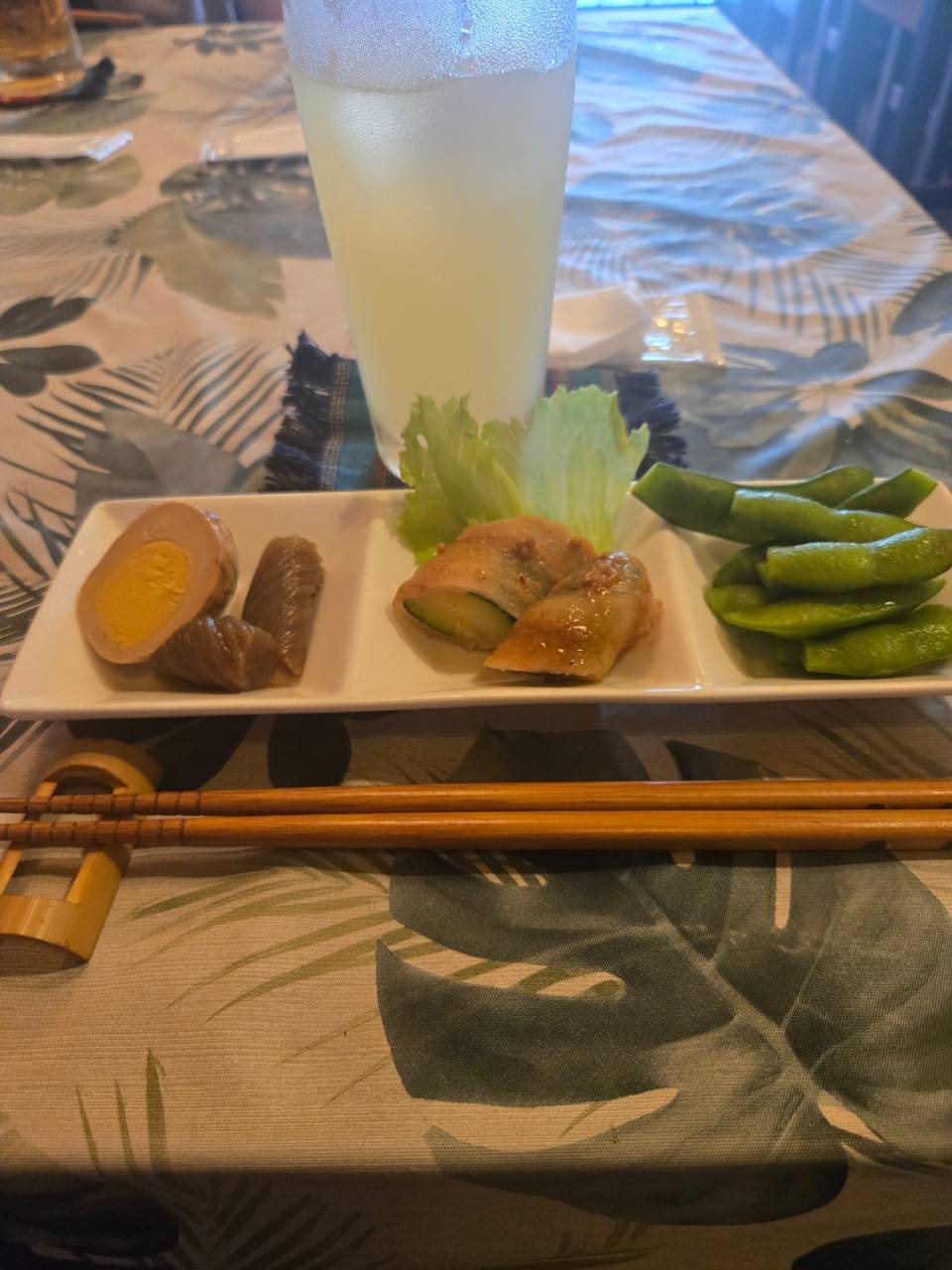 この日は満席で全て予約だそうで、お通し3点もおいしく、ママさんは気さくで人気点なのが納得でした。